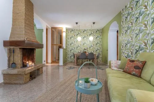 The fireplace is the standout feature of this villa. Boasting a private entrance, this air-conditioned villa features 1 living room, 3 separate bedrooms and 2 bathrooms with a bath and a shower. Guests will find a stovetop, a refrigerator, a dishwasher and an oven in the kitchen. The villa also comes with a barbecue. The villa has tiled floors, a seating area with a flat-screen TV, a washing machine, a tea and coffee maker as well as garden views. The unit has 4 beds.