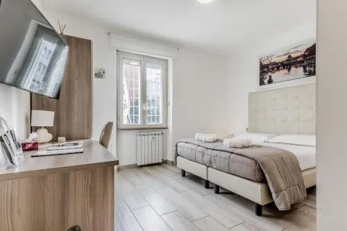 | Bambini con letti supplementari | Sono ammessi bambini di tutte le età. I bambini fino a 3 anni inclusi possono soggiornare al costo di € 10 a persona a notte in una culla (se disponibile). I bambini fino a 3 anni inclusi possono soggiornare al costo di € 5 a persona a notte in uno dei letti già presenti. I bambini di età da 4 anni - fino a 17 anni possono soggiornare al costo di € 20 a persona a notte in uno dei letti già presenti. Gli ospiti di qualsiasi età possono soggiornare al costo di € 20 a persona a notte in un letto extra (se disponibile). Qualsiasi tipo di letto supplementare o culla è disponibile su richiesta e previa conferma da parte della struttura. I supplementi non sono inclusi nell’importo totale e devono essere pagati separatamente durante il soggiorno. |