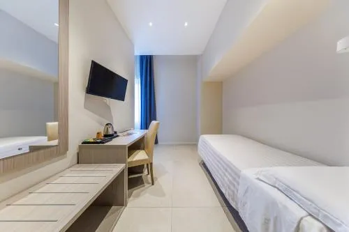 Camera matrimoniale/doppia con letti singoli dotata di bagno privato completo di doccia a filo pavimento, bidet, asciugacapelli e set di cortesia. È provvista di aria condizionata, TV a schermo piatto, pareti insonorizzate, minibar, set per la preparazione di tè e caffè e vista sulla città.