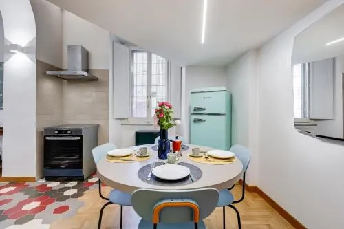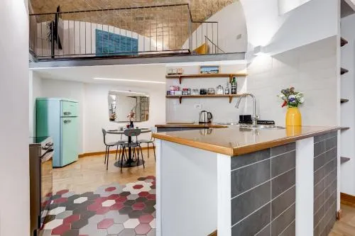 The holiday home offers a dining area, a wardrobe, as well as a shared bathroom featuring a shower and a bidet. In the fully equipped kitchen, guests will find a stovetop, a refrigerator, a dishwasher and kitchenware. The holiday home features parquet floors, a seating area with a flat-screen TV with streaming services, air conditioning, a private entrance, as well as a coffee machine. The unit offers 2 beds.
