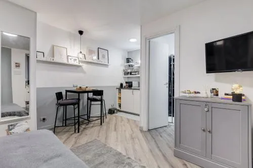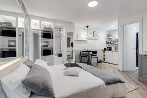 Boasting a private entrance, this air-conditioned holiday home features a kitchen, 1 bedroom and 1 bathroom with a shower and a bidet. In the fully equipped kitchen, guests will find a stovetop, a refrigerator, kitchenware and a microwave. This holiday home has a tea and coffee maker, flat-screen TV with streaming services, an inner courtyard view, as well as wine/champagne for guests. The unit has 1 bed.