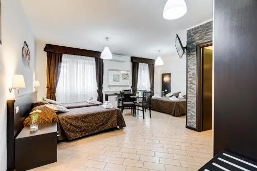 | Bambini con letti supplementari | Sono ammessi bambini di tutte le età. I bambini fino a 5 anni inclusi possono soggiornare al costo di € 15 a persona a notte in una culla (se disponibile). I bambini fino a 5 anni inclusi possono soggiornare gratis in uno dei letti già presenti. Non hai aggiunto letti supplementari. Qualsiasi tipo di letto supplementare o culla è disponibile su richiesta e previa conferma da parte della struttura. I supplementi non sono inclusi nell’importo totale e devono essere pagati separatamente durante il soggiorno. |