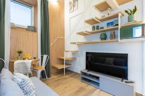 Featuring a private entrance, this air-conditioned holiday home comprises 1 living room, 1 separate bedroom and 1 bathroom with a bath and a shower. Meals can be prepared in the kitchenette, which comes with a stovetop, a refrigerator, kitchenware and a microwave. The holiday home provides a coffee machine, a dining area, a wardrobe, a sofa, as well as a flat-screen TV with streaming services. The unit offers 1 bed.