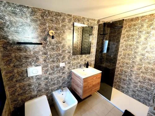 Boasting a private entrance, this air-conditioned holiday home includes 1 living room, 2 separate bedrooms and 1 bathroom with a walk-in shower and a bidet. In the well-fitted kitchen, guests will find a stovetop, a refrigerator, a dishwasher and kitchenware. The holiday home offers a flat-screen TV with streaming services, soundproof walls, a tea and coffee maker, a seating area as well as garden views. The unit has 3 beds.