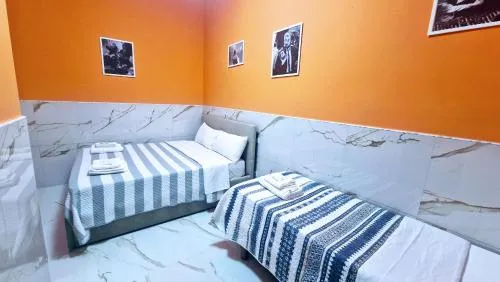 Guests will have a special experience as this quadruple room provides a fireplace. Offering free toiletries, this quadruple room includes a private bathroom with a walk-in shower, a bidet and a hairdryer. The well-equipped kitchen has a refrigerator, kitchenware, an oven and a microwave. The air-conditioned quadruple room offers a flat-screen TV with streaming services, a private entrance, soundproof walls, a tea and coffee maker as well as city views. The unit has 3 beds.