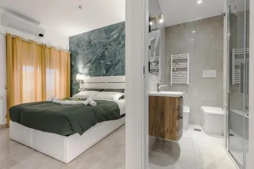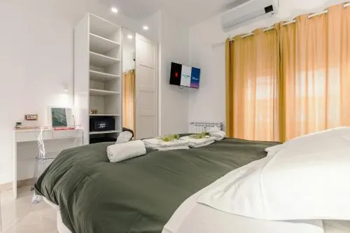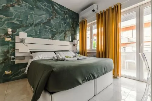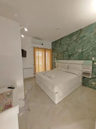 Camera matrimoniale climatizzata con ingresso indipendente, balcone vista città e bagno privato munito di doccia. L’alloggio dispone di 1 letto.