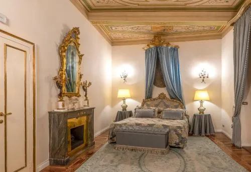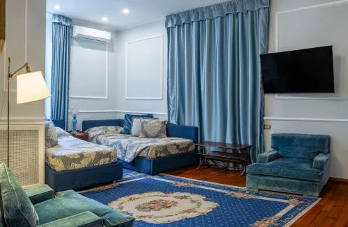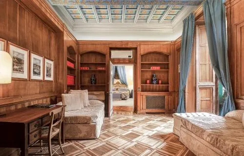 Soggiornando in questa suite in cui ha risieduto l'Imperatore Napoleone (III) Bonaparte insieme a sua madre Ortensia di Beauharnais potrete scoprire un luogo storico nel cuore di Roma dotato di tutti i comfort moderni. Questa lussuosa suite di oltre 150 m2 può ospitare fino a 4 adulti e un bambino in una culla. Durante il vostro soggiorno avrete a disposizione diversi spazi e ambienti tra cui la Bright Sun Room, dove potrete leggere in tranquillità o semplicemente rilassarvi, una terrazza privata su cui fare colazione o un aperitivo, una grande camera con letto a baldacchino queen-size, una camera adiacente con 2 letti singoli e uno spazioso bagno con vasca dotata di doccia, doppio lavabo, bidet e servizi igienici.