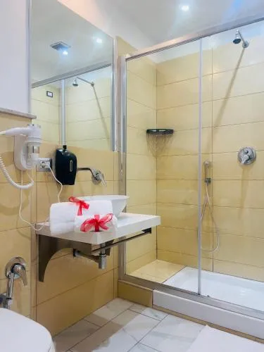 Camera familiare dotata di 1 bagno privato con set di cortesia, doccia, bidet e asciugacapelli. La sistemazione è dotata di aria condizionata, pareti insonorizzate, set per la preparazione di tè e caffè, area salotto, vista sulla città e TV a schermo piatto con servizio di streaming. L’alloggio presenta 2 letti e 1 futon.