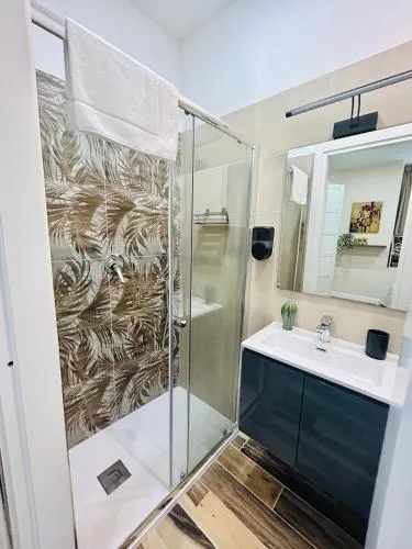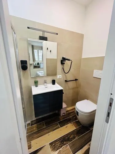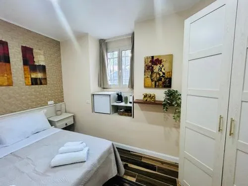 Comodità Bollitore tè/macchina caffè, Doccia, Cassaforte, TV, Aria condizionata, Asciugacapelli, Ferro da stiro, Frigorifero, Scrivania, Prodotti da bagno in omaggio, WC, Bagno privato, Riscaldamento, Vasca o doccia, TV a schermo piatto, Pavimento in marmo o in piastrelle, Bollitore elettrico, Armadio o guardaroba, Bidet, Soluzioni anallergiche, Asciugamani, Biancheria per la casa, Carta igienica, Bottiglia d'acqua, Pattumiere, Presa elettrica vicino al letto, Cuscino ipoallergenico, Aria condizionata indipendente in ogni alloggio, Gel igienizzante per le mani
