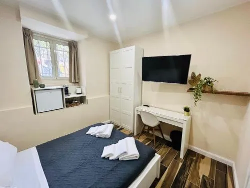 Comodità Bollitore tè/macchina caffè, Doccia, Cassaforte, TV, Aria condizionata, Asciugacapelli, Ferro da stiro, Frigorifero, Scrivania, Prodotti da bagno in omaggio, WC, Bagno privato, Riscaldamento, Vasca o doccia, TV a schermo piatto, Pavimento in marmo o in piastrelle, Bollitore elettrico, Armadio o guardaroba, Bidet, Soluzioni anallergiche, Asciugamani, Biancheria per la casa, Carta igienica, Bottiglia d'acqua, Pattumiere, Bagnoschiuma, Presa elettrica vicino al letto, Cuscino ipoallergenico, Aria condizionata indipendente in ogni alloggio, Gel igienizzante per le mani