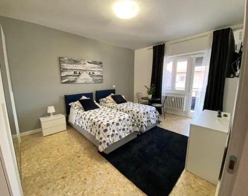 Camera matrimoniale/doppia con letti singoli dotata di cucina ben attrezzata con piano cottura, frigorifero, utensili e forno. Dispone inoltre di aria condizionata, lavatrice, balcone con vista su una strada tranquilla e bagno in comune con doccia. L’alloggio presenta 2 letti.