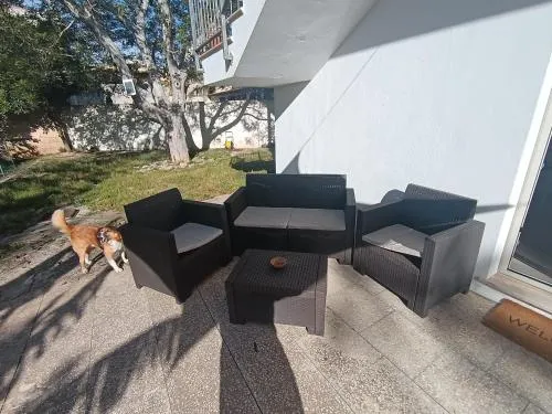 Doccia, TV, Aria condizionata, Asciugacapelli, Ferro da stiro, Angolo cottura, Frigorifero, Scrivania, WC, Lavatrice, Patio, Bagno privato, Riscaldamento, Cucina, TV a schermo piatto, Ingresso indipendente, Divano, Pavimento in marmo o in piastrelle, Vista, Zona pranzo, Utensili da cucina, Zanzariera, Armadio o guardaroba, Forno, Piano cottura, Barbecue, Bidet, Vista giardino, Asciugamani, Biancheria per la casa, Tavolo da pranzo, Arredamento da esterno, Zona pranzo all'aperto, Intera unità situata al piano terra, Piani superiori accessibili solo tramite scale, Intera unità accessibile ai disabili, Indipendente, Stand appendiabiti, Stendibiancheria, Divano letto, Doccia a filo pavimento, Bottiglia d'acqua, Pattumiere, Lettini e culle per bambini, Presa elettrica vicino al letto, Cuscino ipoallergenico, Vista cortile interno, Armadietti, Accesso con chiavi, Gel igienizzante per le mani
