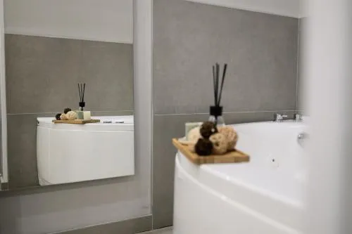 Questa camera matrimoniale vi regalerà un'esperienza speciale grazie alla vasca idromassaggio. In loco troverete un bagno privato con vasca, doccia, bidet, set di cortesia e accappatoi. La sistemazione è dotata di aria condizionata, TV a schermo piatto, ingresso indipendente, minibar e set per la preparazione di tè e caffè. L’alloggio dispone di 1 letto.