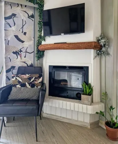 This holiday home's standout feature is the fireplace. Boasting a private entrance, this air-conditioned holiday home includes 1 living room, 2 separate bedrooms and 1 bathroom with a shower and a hairdryer. In the kitchen, guests will find a stovetop, a refrigerator, kitchenware and an oven. This holiday home has a tea and coffee maker, a seating area, a flat-screen TV with streaming services and a terrace. The unit has 4 beds.