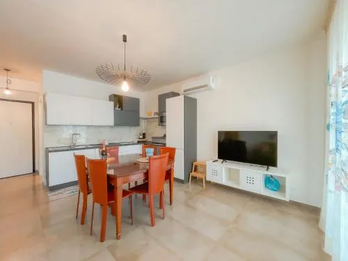 Boasting a private entrance, this air-conditioned holiday home comes with 1 living room, 2 separate bedrooms and 1 bathroom with a shower and a bidet. Guests can make meals in the kitchen that features a stovetop, a refrigerator, a dishwasher and kitchenware. There is a washing machine, soundproof walls and a terrace and complimentary wine/champagne is available for guests. The unit has 4 beds.