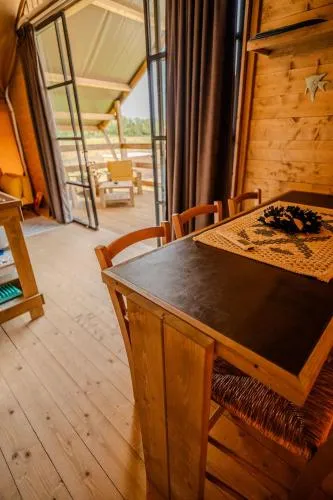 The tent features air conditioning, a seating area, as well as a private bathroom boasting a shower and a bidet. The tent offers a dining area, a wardrobe, as well as an outdoor dining area and outdoor furniture. The unit has 5 beds.