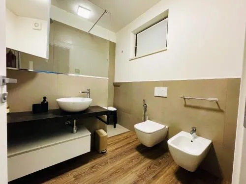 Bollitore tè/macchina caffè, Doccia, Canali pay per view, TV, Aria condizionata, Asciugacapelli, Ferro da stiro, Angolo cottura, Balcone, Frigorifero, Scrivania, Ferro e asse da stiro, Zona soggiorno, Prodotti da bagno in omaggio, Ventilatore, WC, Lavastoviglie, Lavatrice, Patio, Bagno privato, Riscaldamento, Canali satellitari, Cucina, Canali via cavo, Vasca o doccia, Disponibilità di camere comunicanti, TV a schermo piatto, Ingresso indipendente, Divano, Insonorizzazione, Pavimento in marmo o in piastrelle, Vista, Parquet o pavimento in legno, Zona pranzo, Bollitore elettrico, Utensili da cucina, Asciugatrice, Armadio o guardaroba, Forno, Piano cottura, Bidet, Vista giardino, Vista montagna, Soluzioni anallergiche, Prodotti per le pulizie, Macchina da caffè, Terrazza, Asciugamani, Biancheria per la casa, Tavolo da pranzo, Arredamento da esterno, Zona pranzo all'aperto, Intera unità situata al piano terra, Indipendente, Appartamento privato in edificio, Stand appendiabiti, Letto pieghevole, Stendibiancheria, Carta igienica, Cancelletti di sicurezza per bambini, Divano letto, Doccia a filo pavimento, Campanello di emergenza nel bagno, Bottiglia d'acqua, Cioccolatini o biscotti, Pattumiere, Calici da vino, Lettini e culle per bambini, Shampoo, Balsamo, Bagnoschiuma, Presa elettrica vicino al letto, Adattatore, Cuscino non di piume, Cuscino ipoallergenico, Servizio streaming (per es. Netflix), Allarme antifumo, Estintori, Accesso con chiavi, Rilevatore di monossido di carbonio, Aria condizionata indipendente in ogni alloggio, Gel igienizzante per le mani