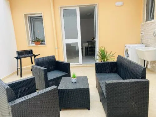 Doccia, TV, Aria condizionata, Asciugacapelli, Ferro da stiro, Angolo cottura, Frigorifero, Zona soggiorno, Prodotti da bagno in omaggio, Ventilatore, WC, Lavatrice, Patio, Riscaldamento, Cucina, Vasca o doccia, Camino, TV a schermo piatto, Ingresso indipendente, Divano, Pavimento in marmo o in piastrelle, Sveglia, Zona pranzo, Utensili da cucina, Zanzariera, Armadio o guardaroba, Forno, Piano cottura, Tostapane, Bidet, Vista giardino, Prodotti per le pulizie, Macchina da caffè, Vista città, Terrazza, Asciugamani, Biancheria per la casa, Tavolo da pranzo, Zona pranzo all'aperto, Intera unità situata al piano terra, Intera unità accessibile ai disabili, Indipendente, Letto pieghevole, Stendibiancheria, Carta igienica, Divano letto, Pattumiere, Calici da vino, Lettini e culle per bambini, Cuffia da doccia, Presa elettrica vicino al letto, Adattatore, Cuscino non di piume, Vista cortile interno, Vista su strada tranquilla, Accesso con chiavi, Gel igienizzante per le mani