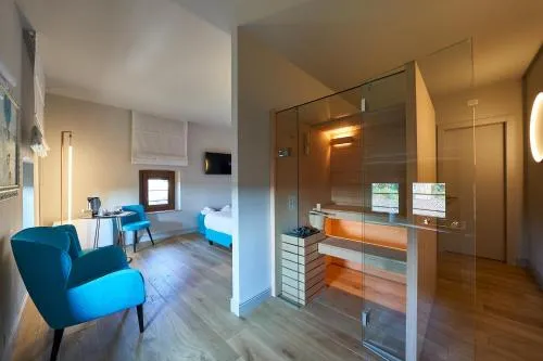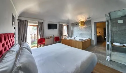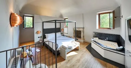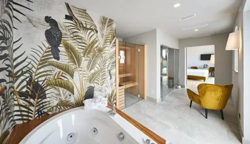 Suite provvista di una vasca idromassaggio, di una vasca da bagno con idromassaggio e di una sauna. La sistemazione comprende inoltre 1 soggiorno, 1 camera da letto separata e 1 bagno con doccia a filo pavimento e set di cortesia. Questa sistemazione climatizzata offre una TV a schermo piatto con servizi di streaming, pareti insonorizzate, un minibar, un set per la preparazione di tè e caffè, e la vista sul lago. L'alloggio presenta 1 letto.