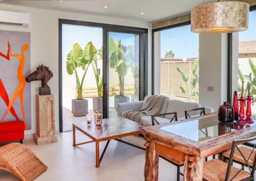 This villa provides a private pool. Featuring a private entrance, this air-conditioned villa is comprised of a kitchen, 2 bedrooms and 3 bathrooms with a shower and a bidet. Guests will find a stovetop, a refrigerator, a dishwasher and kitchenware in the kitchen. The villa also has a barbecue. Boasting a terrace with sea views, this villa also offers a washing machine and a TV with cable channels. The unit offers 2 beds.