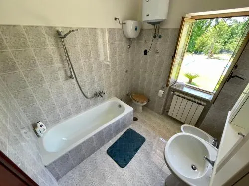 Bollitore tè/macchina caffè, Doccia, Vasca, Asciugacapelli, Ferro da stiro, Balcone, Accappatoio, Frigorifero, Scrivania, Zona soggiorno, Prodotti da bagno in omaggio, Ventilatore, WC, Lavastoviglie, Lavatrice, Patio, Bagno privato, Riscaldamento, Cucina, Vasca o doccia, Camino, TV a schermo piatto, Ingresso indipendente, Divano, Pavimento in marmo o in piastrelle, Vista, Zona pranzo, Piscina privata a uso esclusivo, Forno, Piano cottura, Barbecue, Bidet, Vista giardino, Vista piscina, Prodotti per le pulizie, Macchina da caffè, Asciugamani, Biancheria per la casa, Tavolo da pranzo, Arredamento da esterno, Piani superiori accessibili solo tramite scale, Indipendente, Letto pieghevole, Carta igienica, Giochi da tavolo/puzzle, Divano letto, Piscina con vista, Zona acqua bassa, Bottiglia d'acqua, Cioccolatini o biscotti, Pattumiere, Calici da vino, Lettini e culle per bambini, Shampoo, Bagnoschiuma, Presa elettrica vicino al letto, Adattatore, Cuscino non di piume, Vista cortile interno, Allarme antifumo, Estintori, Accesso con chiavi, Rilevatore di monossido di carbonio