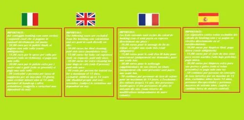 | Animali | Animali ammessi. Potrebbe essere richiesto un supplemento. |