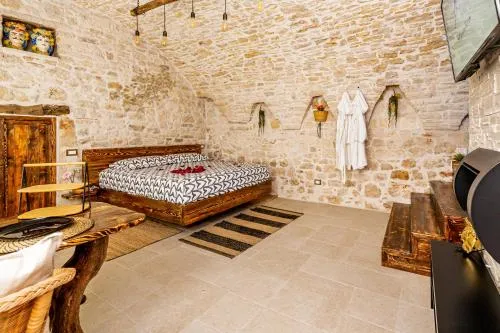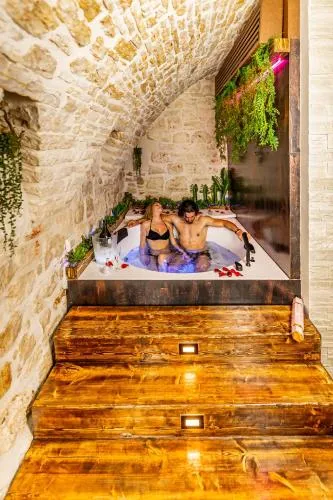 This double room's standout features are the hot tub and fireplace. Offering free toiletries and bathrobes, this double room includes a private bathroom with a walk-in shower, a bidet and a hairdryer. In the kitchenette, guests will find a stovetop, a refrigerator and kitchenware. The spacious air-conditioned double room offers a flat-screen TV with streaming services, a private entrance, a tea and coffee maker and a dining area. The unit offers 1 bed.