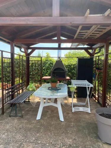 Bollitore tè/macchina caffè, Vasca, TV, Aria condizionata, Asciugacapelli, Angolo cottura, Frigorifero, Zona soggiorno, Prodotti da bagno in omaggio, WC, Lavastoviglie, Patio, Bagno privato, Riscaldamento, Cucina, Vasca o doccia, Camino, Disponibilità di camere comunicanti, TV a schermo piatto, Divano, Pavimento in marmo o in piastrelle, Vista, Zona pranzo, Zanzariera, Armadio o guardaroba, Forno, Piano cottura, Barbecue, Bidet, Vista giardino, Prodotti per le pulizie, Macchina da caffè, Asciugamani, Biancheria per la casa, Tavolo da pranzo, Arredamento da esterno, Zona pranzo all'aperto, Intera unità situata al piano terra, Indipendente, Stand appendiabiti, Stendibiancheria, Carta igienica, Divano letto, Bottiglia d'acqua, Cioccolatini o biscotti, Pattumiere, Calici da vino, Lettini e culle per bambini, Shampoo, Balsamo, Bagnoschiuma, Presa elettrica vicino al letto, Cuscino non di piume, Estintori, Accesso con chiavi, Aria condizionata indipendente in ogni alloggio, Gel igienizzante per le mani