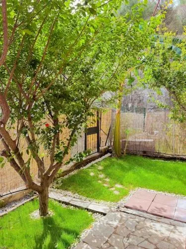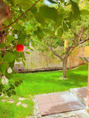 Boasting a private entrance, this air-conditioned holiday home comes with 1 living room, 2 separate bedrooms and 2 bathrooms with a shower and a bidet. The well-equipped kitchen has a stovetop, a refrigerator, kitchenware and a microwave. Featuring a terrace with garden views, this holiday home also features a washing machine and a flat-screen TV with satellite channels. The unit has 5 beds.