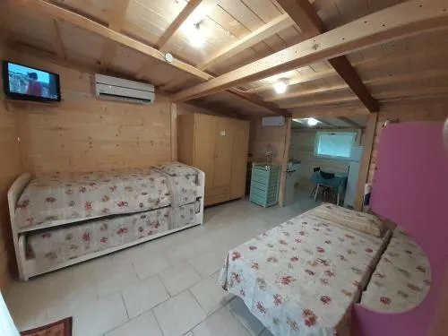 This quadruple room provides a pool with a view. Providing free toiletries, this quadruple room includes a private bathroom with a shower, a bidet and a hairdryer. Guests will find a stovetop, a refrigerator, kitchenware and an oven in the kitchen. The quadruple room also provides guests with a barbecue. The quadruple room features tiled floors, a seating area with a flat-screen TV, a washing machine, a minibar as well as garden views. The unit offers 2 beds.