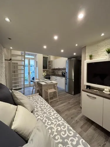 Featuring a private entrance, this air-conditioned holiday home consists of 1 living room, 1 separate bedroom and 1 bathroom with a shower and a bidet. The well-fitted kitchen features a stovetop, a refrigerator and kitchenware. The holiday home provides a minibar, a coffee machine, heating, a flat-screen TV with satellite channels, as well as sea views. The unit offers 2 beds.