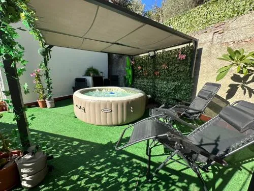 Doccia, TV, Aria condizionata, Vasca idromassaggio, Angolo cottura, Balcone, Frigorifero, Prodotti da bagno in omaggio, WC, Lavatrice, Bagno privato, Riscaldamento, Cucina, Vasca o doccia, TV a schermo piatto, Divano, Vista, Utensili da cucina, Forno, Piano cottura, Bidet, Vista giardino, Terrazza, Asciugamani, Biancheria per la casa, Intera unità situata al piano terra, Stendibiancheria, Carta igienica, Divano letto, Presa elettrica vicino al letto