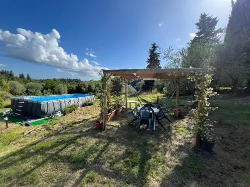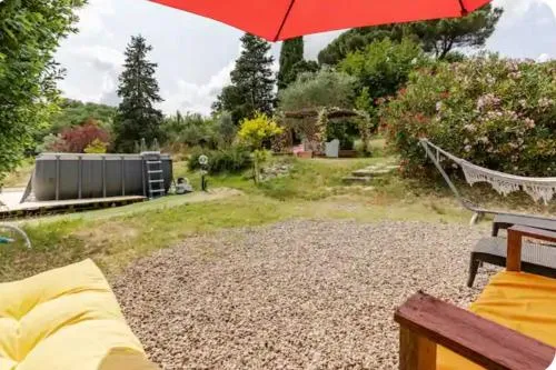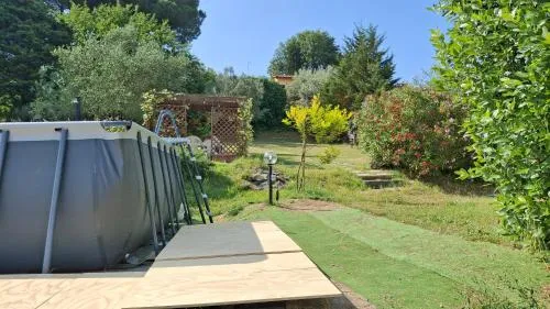 Featuring a private entrance, this air-conditioned holiday home is comprised of 1 living room, 2 separate bedrooms and 1 bathroom with a bath and a bidet. Guests will find a stovetop, a refrigerator, kitchenware and an oven in the fully equipped kitchen. The holiday home also has a barbecue. Boasting a terrace with garden views, this holiday home also offers a tea and coffee maker and a flat-screen TV with streaming services. The unit offers 4 beds.