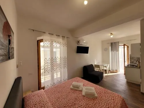Doccia, TV, Aria condizionata, Asciugacapelli, Angolo cottura, Balcone, Accappatoio, Frigorifero, Prodotti da bagno in omaggio, WC, Bagno privato, Riscaldamento, Canali via cavo, Vasca o doccia, TV a schermo piatto, Insonorizzazione, Pavimento in marmo o in piastrelle, Vista, Utensili da cucina, Zanzariera, Armadio o guardaroba, Piano cottura, Bidet, Vista mare, Prodotti per le pulizie, Asciugamani, Biancheria per la casa, Tavolo da pranzo, Appartamento privato in edificio, Stand appendiabiti, Stendibiancheria, Carta igienica, Doccia a filo pavimento, Campanello di emergenza nel bagno, Teli, Bottiglia d'acqua, Bagnoschiuma, Presa elettrica vicino al letto, Cuscino ipoallergenico, Aria condizionata indipendente in ogni alloggio, Gel igienizzante per le mani