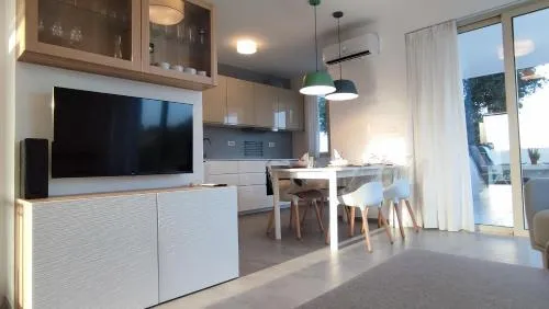 Doccia, Canali pay per view, TV, Aria condizionata, Asciugacapelli, Ferro da stiro, Angolo cottura, Frigorifero, Ferro e asse da stiro, Zona soggiorno, Ventilatore, WC, Forno a microonde, Lavastoviglie, Lavatrice, Bagno privato, Riscaldamento, Vasca o doccia, TV a schermo piatto, Ingresso indipendente, Divano, Insonorizzazione, Pavimento in marmo o in piastrelle, Vista, Zona pranzo, Bollitore elettrico, Utensili da cucina, Zanzariera, Asciugatrice, Armadio o guardaroba, Forno, Piano cottura, Tostapane, Bidet, Vista mare, Vista giardino, Prodotti per le pulizie, Macchina da caffè, Terrazza, Asciugamani, Biancheria per la casa, Tavolo da pranzo, Zona pranzo all'aperto, Intera unità situata al piano terra, Indipendente, Stand appendiabiti, Stendibiancheria, Carta igienica, Divano letto, Pattumiere, Calici da vino, Lettini e culle per bambini, Presa elettrica vicino al letto, Adattatore, Cuscino ipoallergenico, Servizio streaming (per es. Netflix), Accesso con chiavi, Aria condizionata indipendente in ogni alloggio