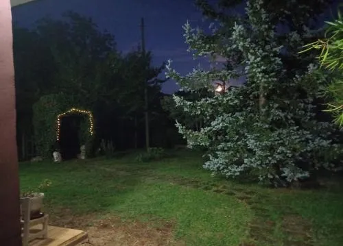 This holiday home offers a fireplace. Featuring a private entrance, this air-conditioned holiday home comprises a kitchen, 2 bedrooms and 1 bathroom with a shower and a bidet. Guests will find a stovetop, a refrigerator, kitchenware and an oven in the well-equipped kitchen. The holiday home also provides guests with a barbecue. The holiday home provides a flat-screen TV with cable channels, a coffee machine, a seating area, a dining area as well as garden views. The unit offers 2 beds.
