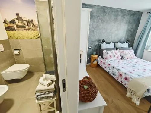 Camera matrimoniale dotata di bagno privato con doccia, bidet, asciugacapelli, accappatoi e set di cortesia. Climatizzata e affacciata sul cortile interno, la sistemazione dispone di TV a schermo piatto, minibar, armadio e set per la preparazione di tè e caffè. L’unità presenta 1 letto.