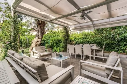 Bollitore tè/macchina caffè, Doccia, Vasca, Cassaforte, TV, Aria condizionata, Asciugacapelli, Vasca idromassaggio, Frigorifero, Ferro e asse da stiro, Zona soggiorno, Forno a microonde, Lavastoviglie, Lavatrice, Bagno privato, Riscaldamento, Cucina, Vasca o doccia, TV a schermo piatto, Ingresso indipendente, Divano, Pavimento in marmo o in piastrelle, Zona pranzo, Bollitore elettrico, Zanzariera, Piscina privata a uso esclusivo, Armadio o guardaroba, Forno, Piano cottura, Tostapane, Bidet, Vista giardino, Prodotti per le pulizie, Macchina da caffè, Asciugamani, Biancheria per la casa, Tavolo da pranzo, Seggiolone, Arredamento da esterno, Zona pranzo all'aperto, Intera unità situata al piano terra, Intera unità accessibile ai disabili, Appartamento privato in edificio, Stand appendiabiti, Stendibiancheria, Carta igienica, Giochi da tavolo/puzzle, Libri, DVD o musica per bambini, Divano letto, Piscina riscaldata, Piscina di acqua salata, Copertura per piscina, Bottiglia d'acqua, Pattumiere, Calici da vino, Lettini e culle per bambini, Shampoo, Balsamo, Bagnoschiuma, Presa elettrica vicino al letto, Adattatore, Cuscino di piume, Servizio streaming (per es. Netflix), Allarme antifumo, Estintori, Accesso con chiavi, Rilevatore di monossido di carbonio, Aria condizionata indipendente in ogni alloggio, Gel igienizzante per le mani