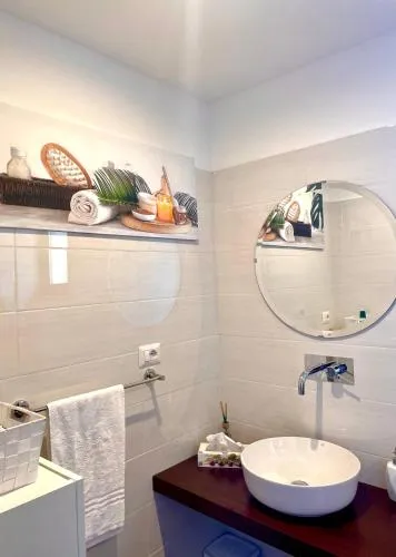 Featuring a private entrance, this air-conditioned holiday home comprises 1 living room, 1 separate bedroom and 2 bathrooms with a shower and a bidet. The fully equipped kitchen has a stovetop, a refrigerator, kitchenware and an oven. This holiday home features a seating area, flat-screen TV, sea views, as well as chocolate for guests. The unit offers 1 bed.