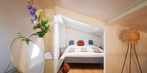 Boasting a private entrance, this air-conditioned holiday home includes a kitchen, 2 bedrooms, one of which is located in the attic, and 2 bathrooms with a walk-in shower and a bidet. Guests can make meals in the kitchen that has a stovetop, a refrigerator, kitchenware and an oven. This holiday home has a coffee machine, flat-screen TV with cable channels, city views, as well as chocolate for guests. The unit has 2 beds.