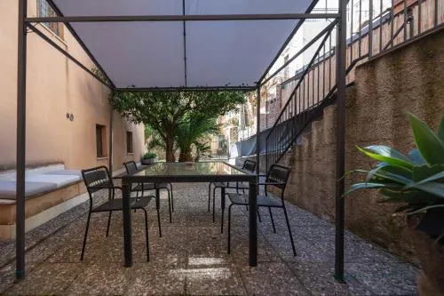 Bollitore tè/macchina caffè, Doccia, Cassaforte, TV, Aria condizionata, Asciugacapelli, Balcone, Frigorifero, Scrivania, Zona soggiorno, Prodotti da bagno in omaggio, WC, Lavatrice, Patio, Bagno privato, Riscaldamento, Cucina, TV a schermo piatto, Divano, Insonorizzazione, Pavimento in marmo o in piastrelle, Zona pranzo, Bollitore elettrico, Utensili da cucina, Zanzariera, Armadio o guardaroba, Forno, Piano cottura, Bidet, Vista giardino, Prodotti per le pulizie, Macchina da caffè, Asciugamani, Biancheria per la casa, Tavolo da pranzo, Arredamento da esterno, Zona pranzo all'aperto, Intera unità situata al piano terra, Stand appendiabiti, Stendibiancheria, Carta igienica, Divano letto, Bottiglia d'acqua, Pattumiere, Calici da vino, Lettini e culle per bambini, Shampoo, Bagnoschiuma, Presa elettrica vicino al letto, Adattatore, Cuscino non di piume, Vista cortile interno, Allarme antifumo, Estintori, Aria condizionata indipendente in ogni alloggio