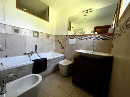 Bollitore tè/macchina caffè, TV, Asciugacapelli, Angolo cottura, Frigorifero, Scrivania, Ferro e asse da stiro, Zona soggiorno, WC, Lavastoviglie, Lavatrice, Bagno privato, Riscaldamento, Canali satellitari, Cucina, Canali via cavo, Vasca o doccia, Camino, TV a schermo piatto, Ingresso indipendente, Divano, Vista, Parquet o pavimento in legno, Zona pranzo, Bollitore elettrico, Utensili da cucina, Armadio o guardaroba, Forno, Piano cottura, Vista giardino, Vista montagna, Macchina da caffè, Asciugamani, Biancheria per la casa, Tavolo da pranzo, Intera unità situata al piano terra, Indipendente, Stand appendiabiti, Stendibiancheria, Carta igienica, Calici da vino, Shampoo, Bagnoschiuma, Servizio streaming (per es. Netflix), Allarme antifumo, Estintori