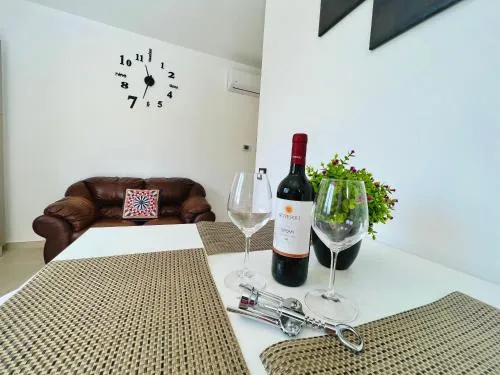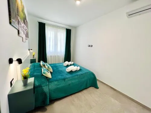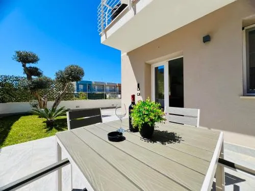 Featuring a private entrance, this air-conditioned holiday home consists of 1 living room, 2 separate bedrooms and 1 bathroom with a shower and a bidet. In the fully equipped kitchen, guests will find a stovetop, a refrigerator, kitchenware and an oven. The holiday home provides a washing machine, soundproof walls, a tea and coffee maker, a flat-screen TV, as well as garden views. The unit offers 4 beds.