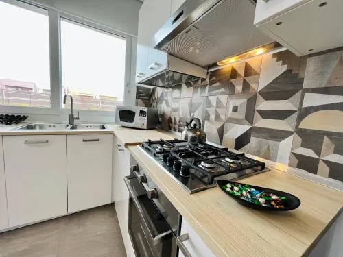 Bollitore tè/macchina caffè, Doccia, TV, Aria condizionata, Asciugacapelli, Ferro da stiro, Angolo cottura, Accappatoio, Frigorifero, Ferro e asse da stiro, Zona soggiorno, Prodotti da bagno in omaggio, WC, Forno a microonde, Lavatrice, Patio, Bagno privato, Riscaldamento, Cucina, Vasca o doccia, TV a schermo piatto, Ingresso indipendente, Divano, Insonorizzazione, Pavimento in marmo o in piastrelle, Vista, Zona pranzo, Bollitore elettrico, Utensili da cucina, Armadio o guardaroba, Forno, Piano cottura, Tostapane, Bidet, Vista giardino, Prodotti per le pulizie, Macchina da caffè, Asciugamani, Biancheria per la casa, Tavolo da pranzo, Seggiolone, Arredamento da esterno, Intera unità situata al piano terra, Indipendente, Appartamento privato in edificio, Stand appendiabiti, Stendibiancheria, Carta igienica, Cancelletti di sicurezza per bambini, Teli, Bottiglia d'acqua, Pattumiere, Calici da vino, Lettini e culle per bambini, Shampoo, Bagnoschiuma, Cuffia da doccia, Presa elettrica vicino al letto, Cuscino di piume, Cuscino non di piume, Vista cortile interno, Vista su strada tranquilla, Armadietti, Allarme antifumo, Estintori, Accesso con chiavi magnetiche, Rilevatore di monossido di carbonio, Servizio concierge, Aria condizionata indipendente in ogni alloggio