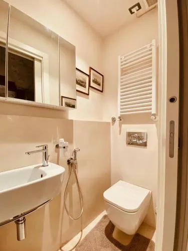 TV, Asciugacapelli, Zona soggiorno, Lavatrice, Bagno privato, Riscaldamento, Cucina, Canali via cavo, Vasca o doccia, TV a schermo piatto, Vista, Prodotti per le pulizie, Asciugamani, Biancheria per la casa, Tavolo da pranzo, Intera unità situata al piano terra, Appartamento privato in edificio, Carta igienica, Libri, DVD o musica per bambini, Calici da vino, Shampoo, Balsamo, Presa elettrica vicino al letto, Vista cortile interno, Vista su strada tranquilla, Purificatori d'aria, Gel igienizzante per le mani