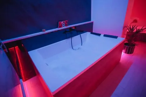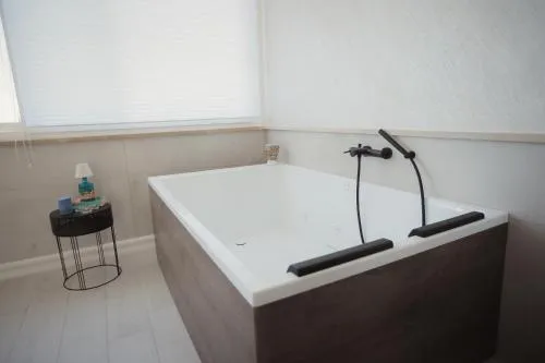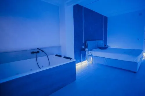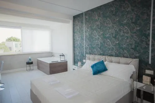 Questa camera matrimoniale è caratterizzata da una vasca idromassaggio. Ampia camera matrimoniale dotata di aria condizionata, ingresso privato, bagno privato con vasca e terrazza con vista sul giardino. L’unità presenta 1 letto.