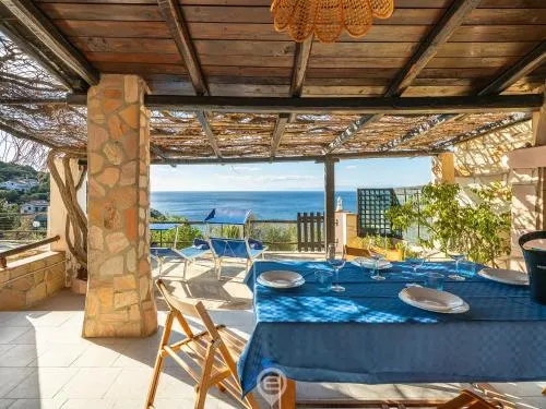 This holiday home's special feature is the fireplace. Featuring a private entrance, this air-conditioned holiday home comprises 1 living room, 2 separate bedrooms and 1 bathroom with a shower and a bidet. Guests will find a stovetop, a refrigerator, kitchenware and an oven in the kitchen. The holiday home also provides guests with a barbecue. The holiday home features a washing machine, a tea and coffee maker, a seating area as well as a terrace with sea views. The unit offers 3 beds.