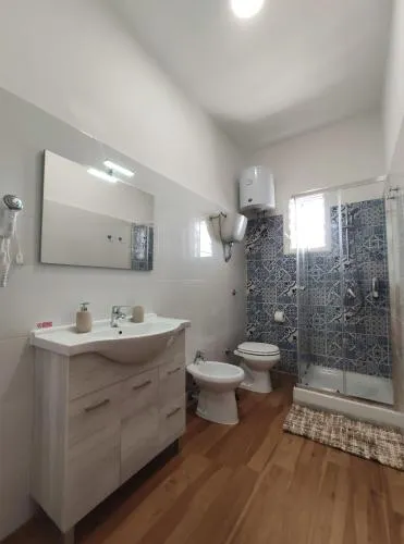 Doccia, TV, Aria condizionata, Asciugacapelli, Ferro da stiro, Angolo cottura, Frigorifero, Ferro e asse da stiro, Zona soggiorno, Ventilatore, WC, Lavatrice, Patio, Bagno privato, Cucina, TV a schermo piatto, Ingresso indipendente, Divano, Zona pranzo, Utensili da cucina, Zanzariera, Armadio o guardaroba, Forno, Piano cottura, Barbecue, Bidet, Vista giardino, Prodotti per le pulizie, Asciugamani, Biancheria per la casa, Tavolo da pranzo, Arredamento da esterno, Zona pranzo all'aperto, Intera unità situata al piano terra, Appartamento privato in edificio, Stendibiancheria, Carta igienica, Divano letto, Bottiglia d'acqua, Pattumiere, Lettini e culle per bambini, Bagnoschiuma, Presa elettrica vicino al letto, Cuscino non di piume, Vista cortile interno, Vista su strada tranquilla, Allarme antifumo, Estintori, Accesso con chiavi, Rilevatore di monossido di carbonio, Aria condizionata indipendente in ogni alloggio