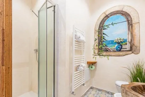 Doccia, TV, Aria condizionata, Asciugacapelli, Ferro da stiro, Angolo cottura, Balcone, Ferro e asse da stiro, Zona soggiorno, Ventilatore, WC, Lavatrice, Patio, Bagno privato, Riscaldamento, Cucina, Canali via cavo, Vasca o doccia, TV a schermo piatto, Ingresso indipendente, Divano, Pavimento in marmo o in piastrelle, Vista, Zona pranzo, Utensili da cucina, Zanzariera, Armadio o guardaroba, Forno, Piano cottura, Bidet, Vista mare, Vista giardino, Prodotti per le pulizie, Macchina da caffè, Terrazza, Asciugamani, Biancheria per la casa, Tavolo da pranzo, Arredamento da esterno, Zona pranzo all'aperto, Indipendente, Semi-indipendente, Appartamento privato in edificio, Stand appendiabiti, Stendibiancheria, Carta igienica, Divano letto, Teli, Pattumiere, Vista cortile interno, Vista su strada tranquilla, Estintori, Accesso con chiavi, Aria condizionata indipendente in ogni alloggio