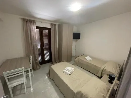 Camera familiare climatizzata dotata di ingresso indipendente, balcone con vista sul giardino e bagno privato con doccia. L’alloggio presenta 3 letti.